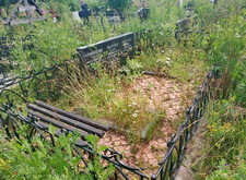 На этом месте захоронения перед нами стояла задача навести порядок. Первая фотография отображает состояние могилы до уборки.