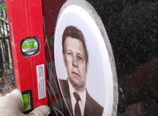 После того как памятники удалось сорвать с их основания, мы выставили их по уровню. Пробивать грунт не требовалось, могилы уже давно хорошо “осели”.